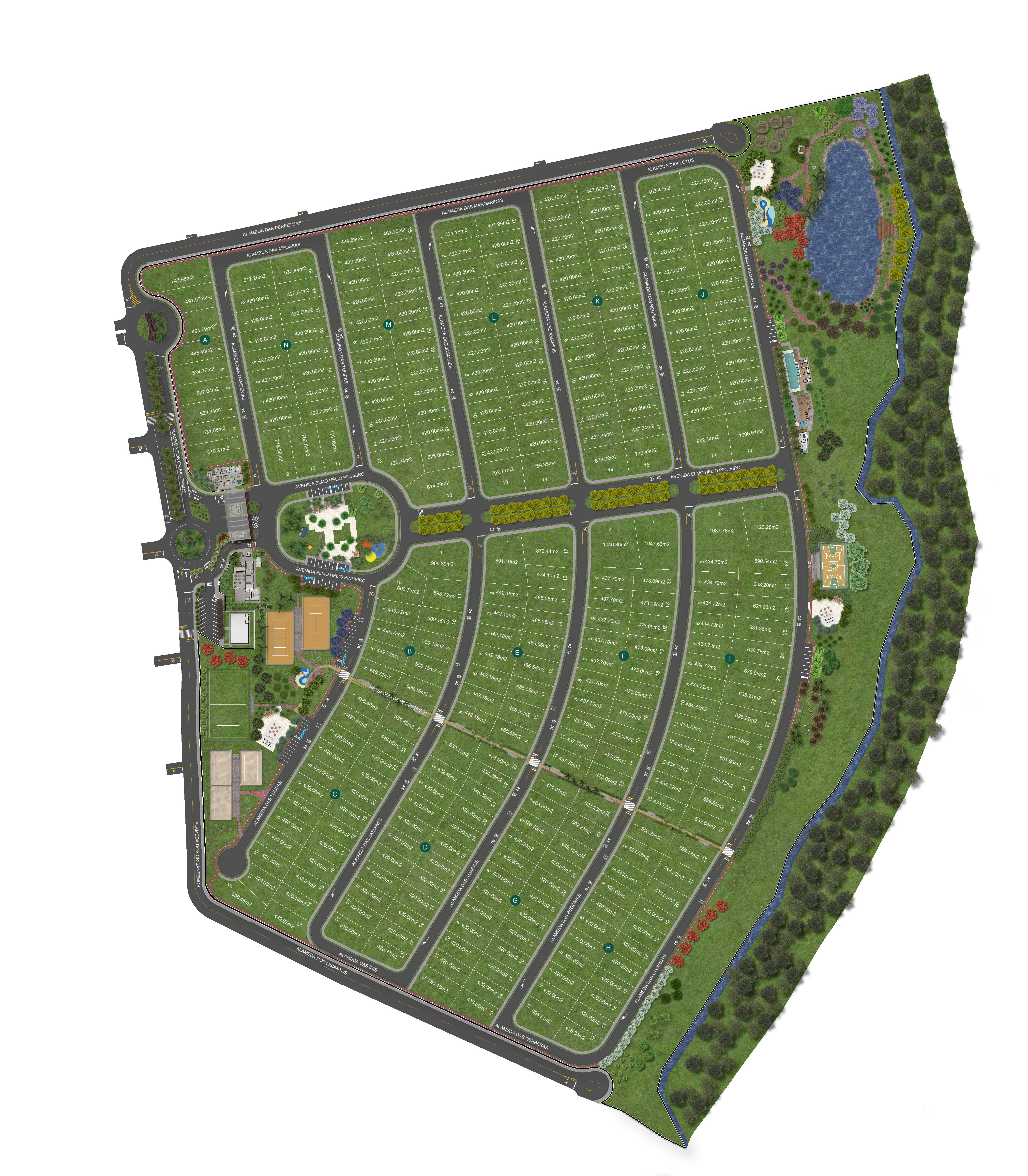 Internamente, o condomínio será circundado por Alamedas e APP, conferindo maior segurança;